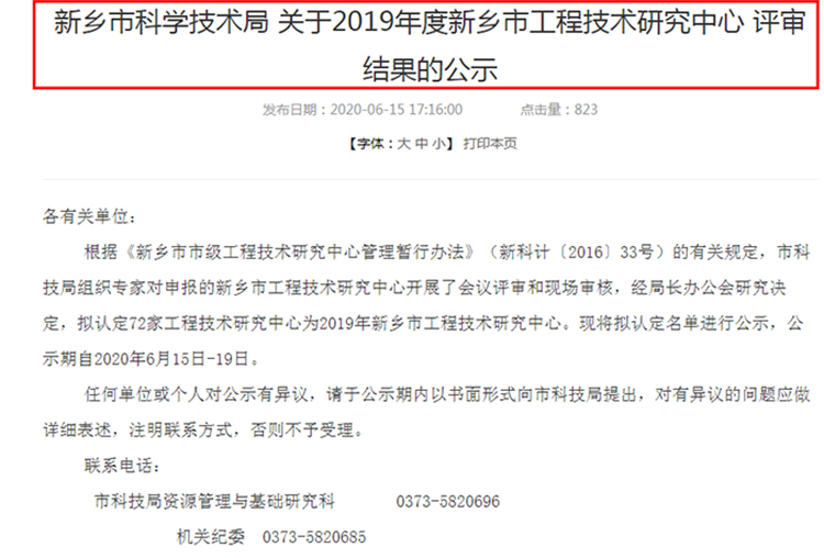 利菲尔特顺利通过“新乡市工程技术研究中心”评审