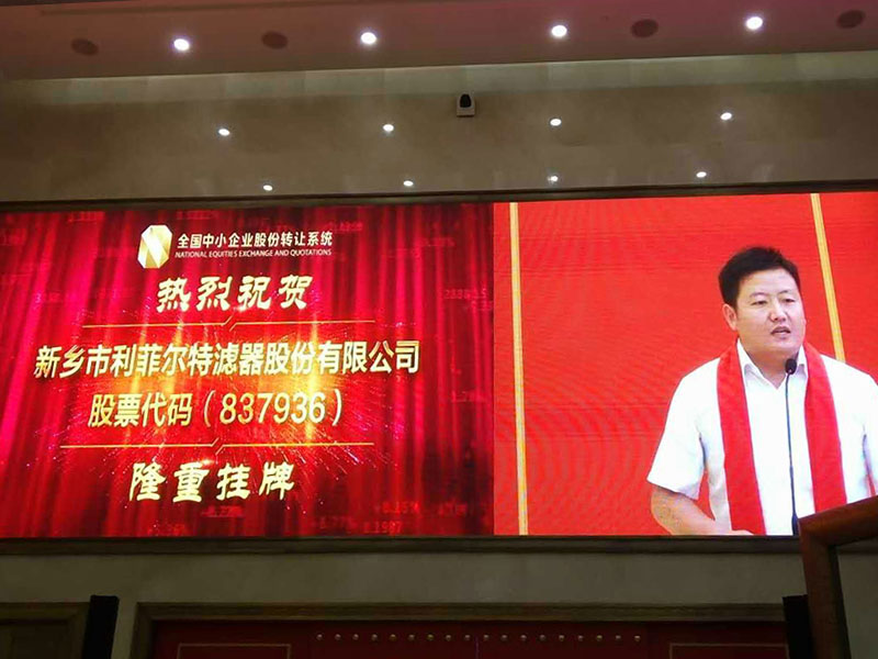 2016年8月18日,新乡市利菲尔特滤器股份有限公司(证券简称:新乡滤器,证券代码:837936)新三板挂牌敲钟仪式在北京隆重举行。此前,利菲尔特经全国中小企业股份转让系统批准,已于2016年7月27 日在新三板挂牌。
