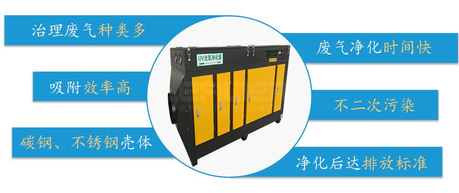 5000风量UV光氧净化器利用高能高臭氧UV紫外线光束分解空气中的氧分子产生游离氧,即活性氧,因游离氧所携正负电子不平衡所以需与氧分子结合,进而产生臭氧。 光氧废气净化器的工作原理: 有足够的能量来产生自由基,引发一系列复杂的物理、化学反应。由臭氧发生器作用引起的气体有机物化学反应是在气相中进行的电离、离解、激发、原子,分子间的相互结合及加成反应。这个能量足以使大多数气态有机物中的化学键发生断裂,从而使其降解。 从净化空气效率考虑,我们选择了-C波段紫外线和臭氧发生器结合电晕电流较高化装置采用脉冲电晕放吸附技术相结合的原理对有害气体进行消除,其中-C波段紫外线主要用来去除硫化氢、氨、苯、甲苯、二甲苯、甲醛、丙酮、尿烷、树脂、等气体及消毒灭菌。 不锈钢UV光解净化器的优点 我们都知道光氧催化设备普遍应用在化工厂、电子厂、喷漆厂、汽车厂、涂料厂、石油化工行业、家具厂、食品厂、橡胶厂、塑胶厂等产生异味、臭味、有毒有害气体的行业。