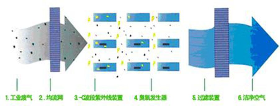 UV光氧净化器设备中对有机挥发性废气首要进行光解与催化氧化。光解首要是通过高能UV紫外线对空气中的氧气发生分解作用,推进氧分子分化变成游离态的氧,因为游离态氧上的正负电子处于不平衡状态,因而游离态氧极易与氧分子联系生成臭氧,而臭氧的强氧化作用可以推进有机挥发性废气的分化。在UV高效设备内安装着紫外线放电管,紫外线放电管发作的光子能量可以高达647KJ/mol、742KJ/mol,如此高的光子能可以迅速裂解小于该能量的有机挥发性废气的分子键,使其转变为无机小分子物质。
