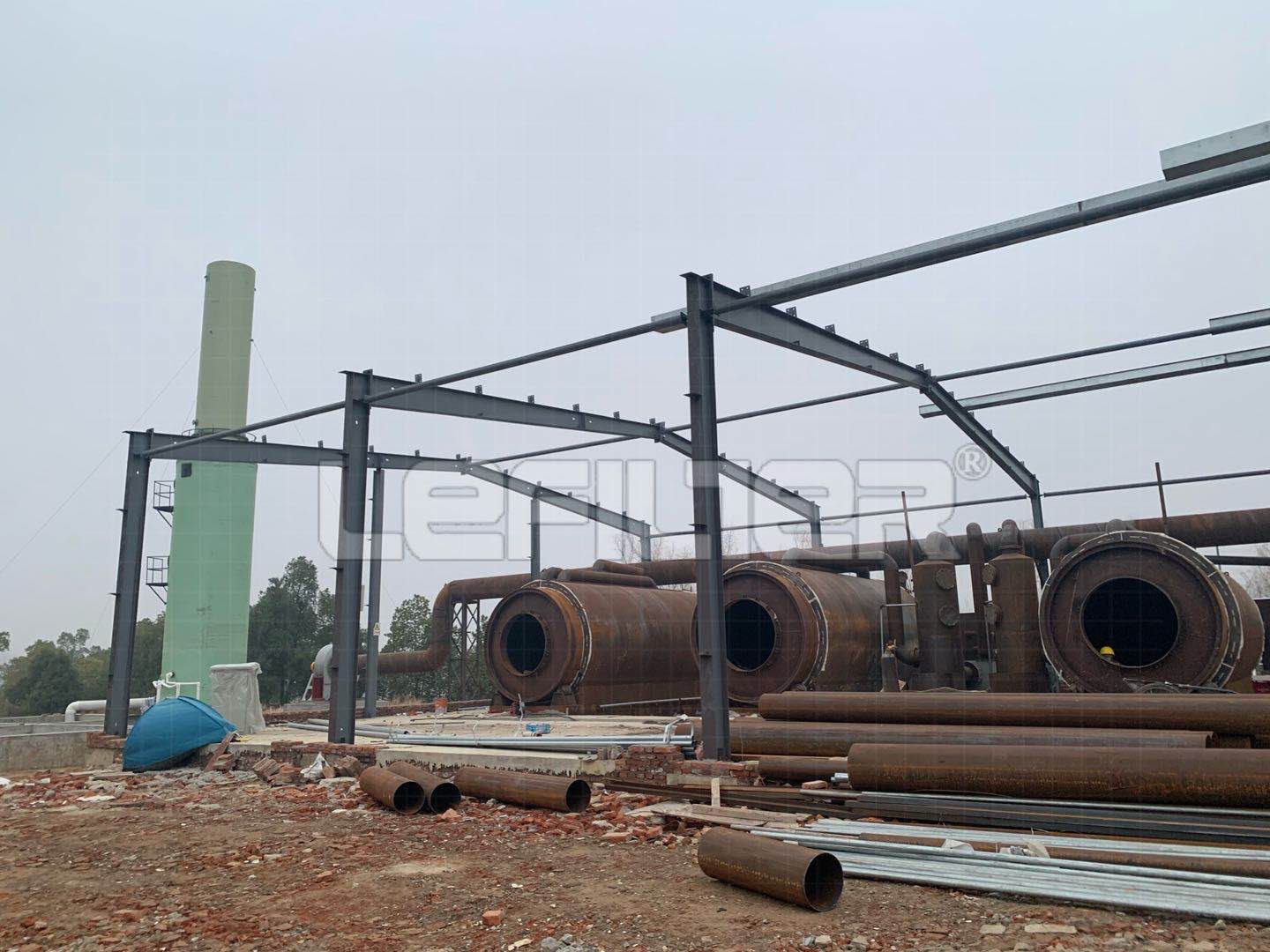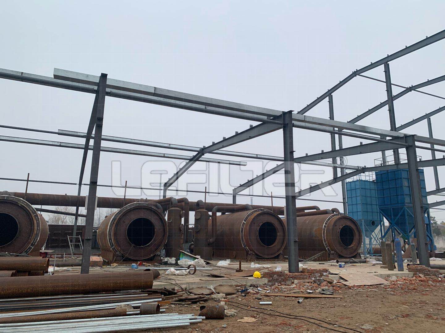 安徽六安 客户 年处理量10万吨的废轮胎炼油项目一期六套设备,在利菲尔特工程师的指导下,安装调试完成,接下来开启废旧轮胎变废为宝,保护环境做出贡献。 本客户现场设计了最新的真空负压炭黑收集系统,解决现场炭黑粉尘污染的问题。 集中烟气脱硫除尘系统
