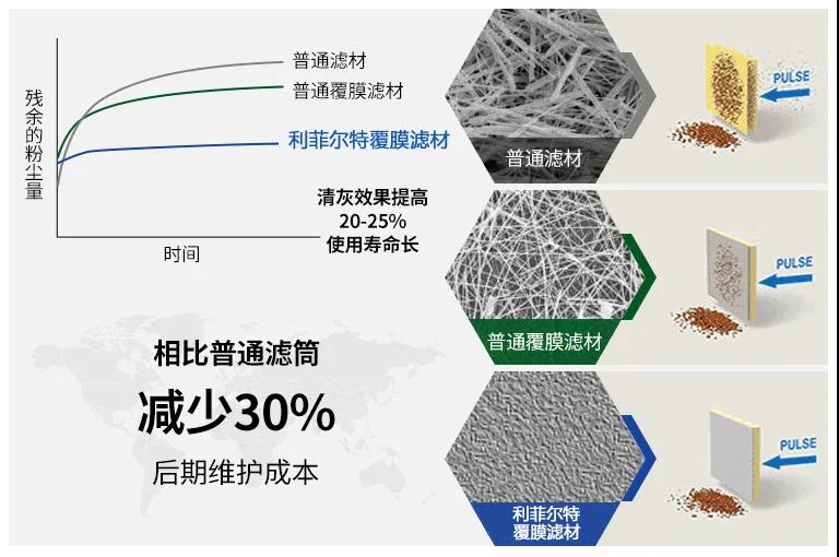 覆膜聚酯无纺布:采用进口PTFE覆膜聚酯滤料,该材料制作滤筒使用寿命长,过滤精度高,反吹清灰更容易,一般工况条件下可达1-2年。适用范围:焊接除尘、喷丸制造、制药、水泥、烟草、纺织工业等行业的过滤。