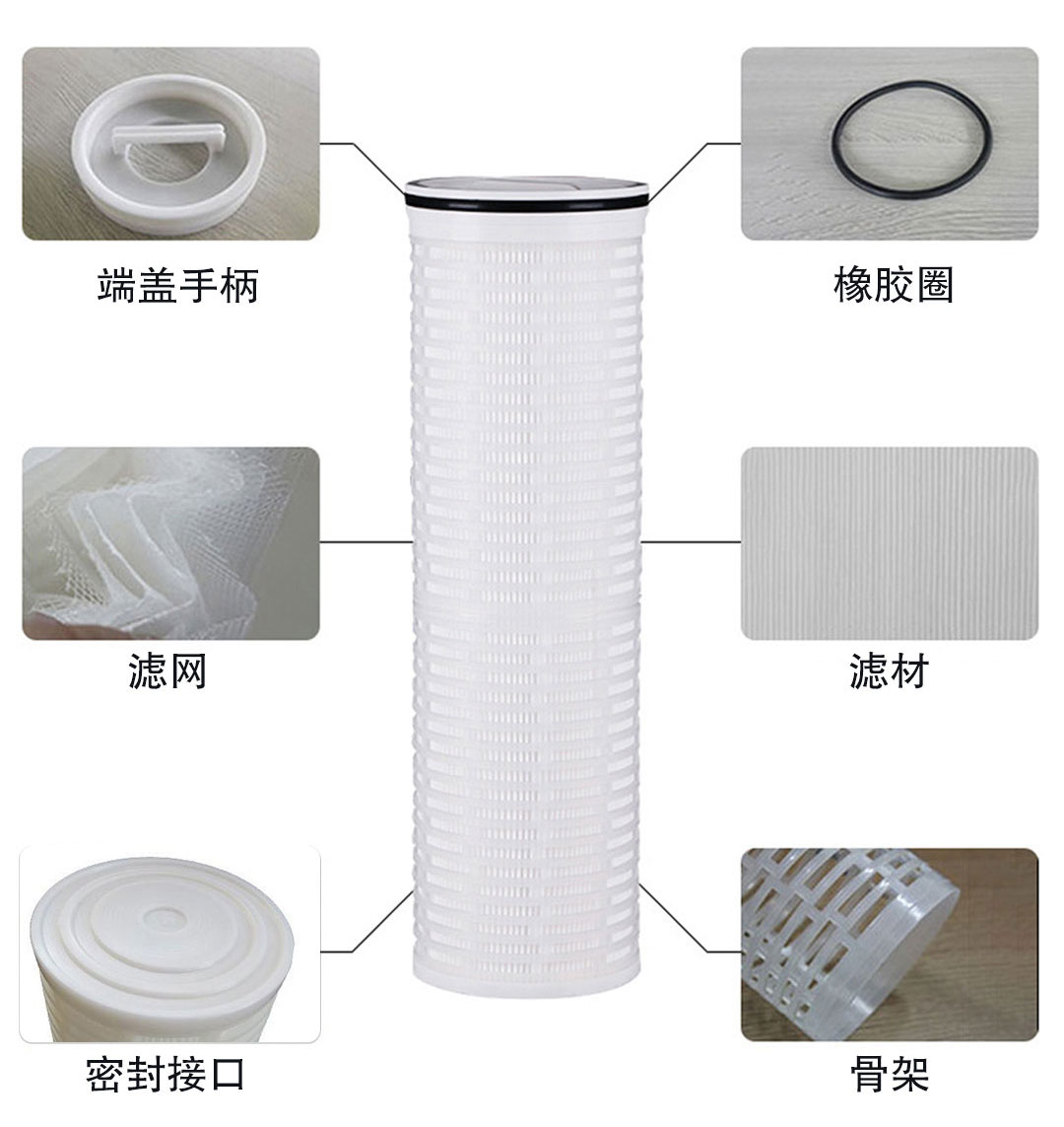 滤芯内部有pp支撑骨架,较大能够承受0.245MPa的压差。