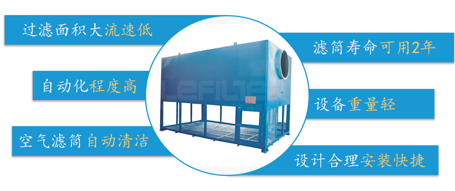 3、本设备可实现空气过滤元件的自动清洁,使设备照常运行,而不影响其他过滤元件正常工作。